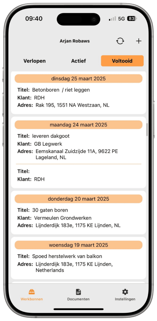 worden werkbonnen digitaal afgerond
